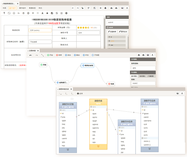 提供纯Web可视化、无编码开发、丰富的在线设计器,可以绘制表单或流程