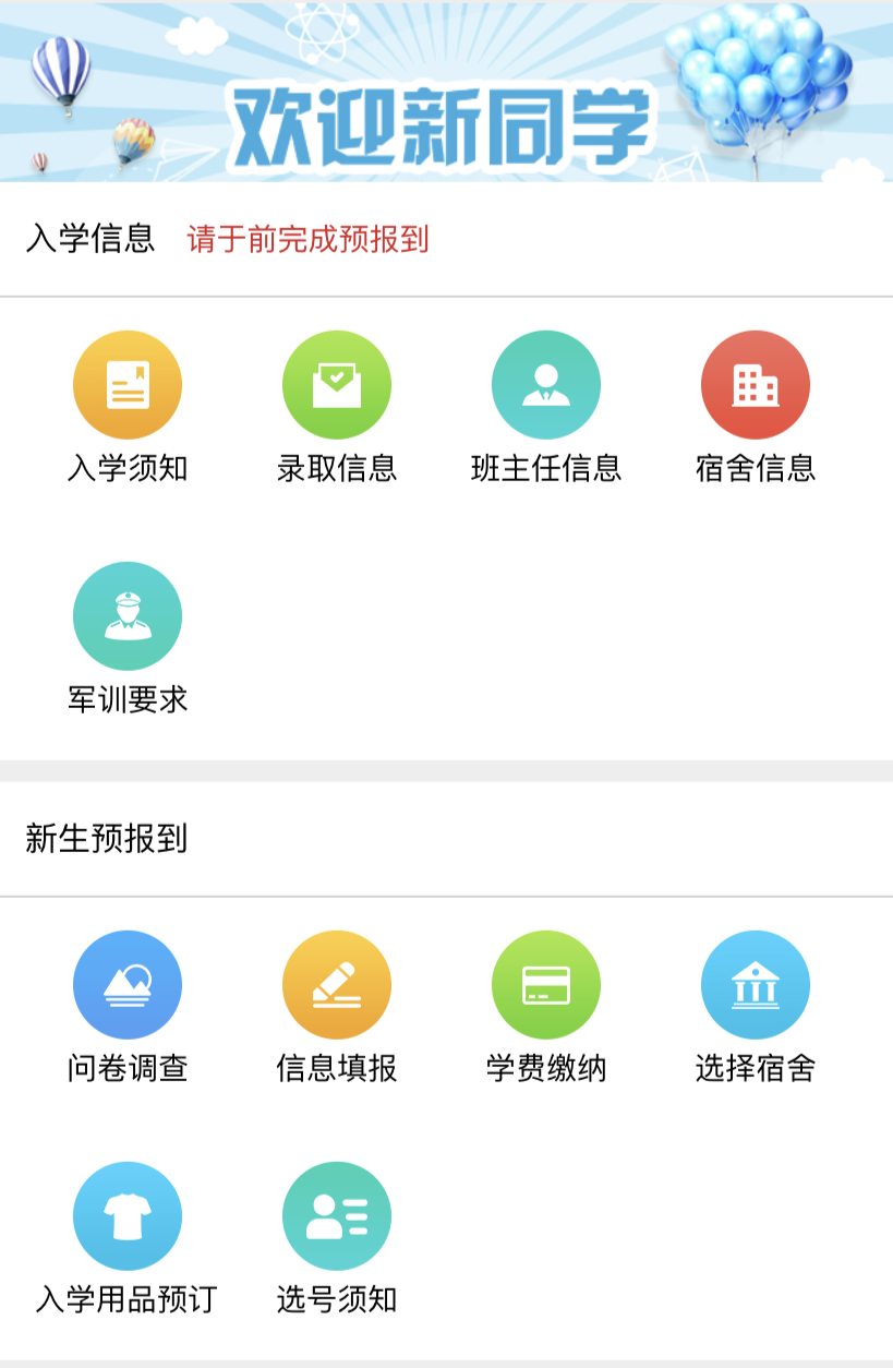 金秋9月,即将迎来新一年的迎新季,学生在收到录取通知书之后,就可以登陆迎新系统,查看迎新相关事宜,可选择通过移动APP完成信息填报、选择宿舍、学费缴费、入学用品预定等多个功能。入校后线下扫码登记,完成整个报到流程。