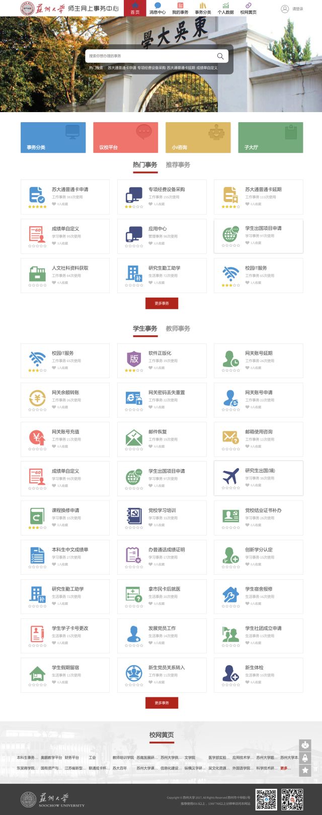 新版苏州大学师生网上事务中心的设计,在提升视觉效果的同时兼顾了用户对旧版的操作习惯。
