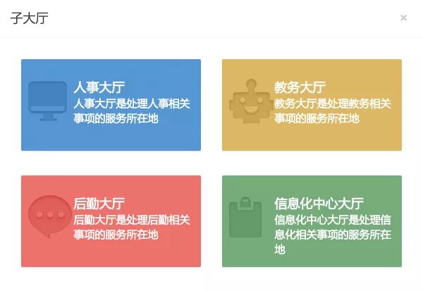 本次升级率先推出人事、教务、后勤、信息化中心四大部门子大厅。