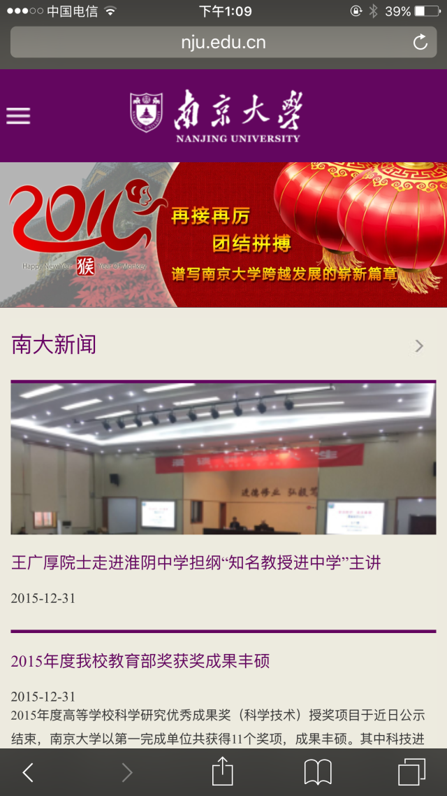 2016年1月1日,在辞旧迎新之际,我们满怀期待的迎来了南京大学新主页的顺利上线。