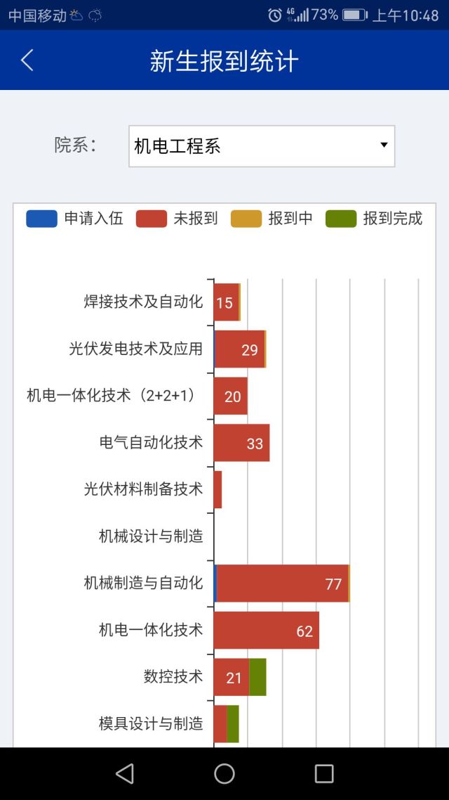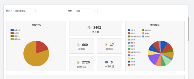 通过迎新系统的实时统计,不管在哪里,校领导、院系老师都可以轻松掌握迎新情况。