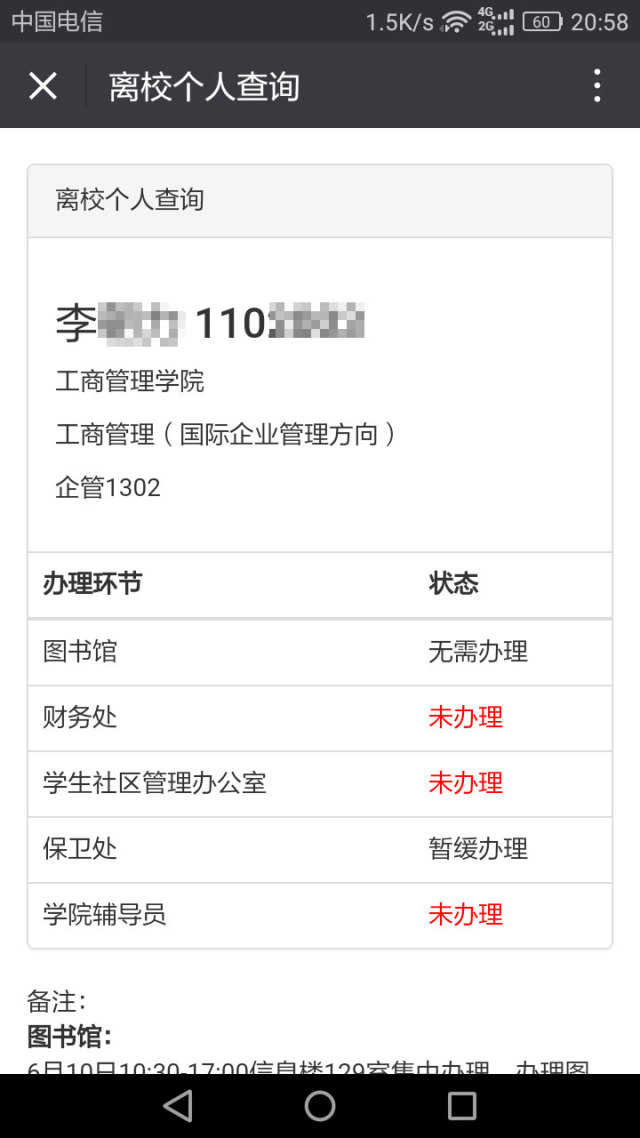 ☑ 财务处、图书馆、保卫处等相关职能部门也免除了为近2500名学生逐一办理盖章手续的麻烦,只需要接待少量相关环节未办理的同学,大大降低工作量,提高效率!