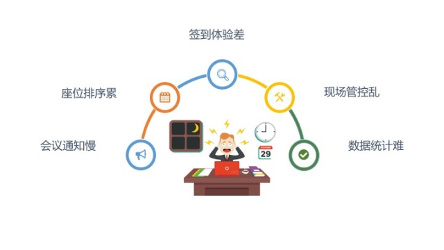 传统的会议管理,任务多、事务杂、统计难、签到烦……