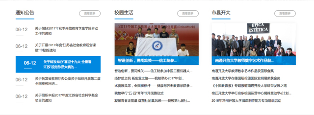 江苏开放大学、江苏城市职业学院新主页在提升“颜值”和“服务”的同时,优化了主页提供的“信息量”,为师生、社会人士、市县开大等访问者提供了最大的访问便利,在内容上着力呈现“开放大学”特色,真正彰显了学校的品牌形象。