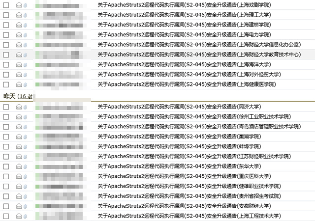 特别提醒您及时检查在使用的所有系统是否受Struts2 S2-045漏洞影响。如需苏迪协助,请和我们联系,我们将尽力协助您完成安全加固。