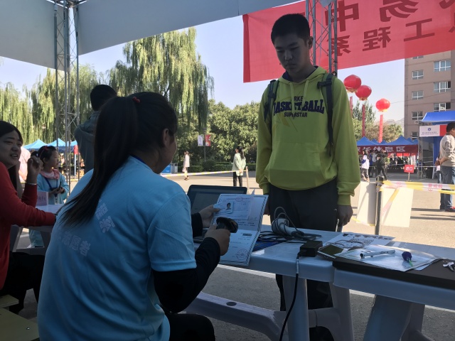 报到现场,办理人员通过迎新系统,扫描录取通知书的二维码,获取新生信息,简单快捷。