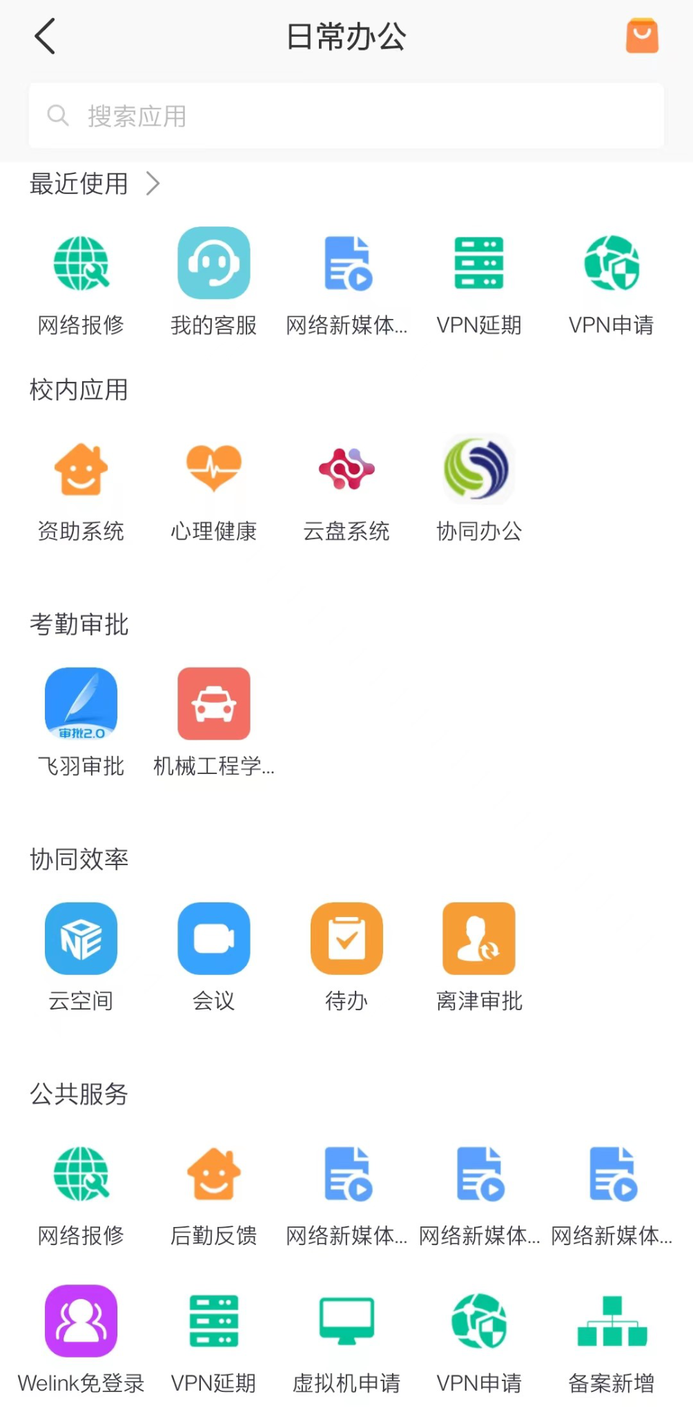 通过WeLlink自身的“云桥”能力,实现移动端内外网的融合,仅一次登录即可完成跳转。师生随时在线处理OA待办、查阅通知公告、日程安排、课表查询、办事中心、工大新闻等事务。