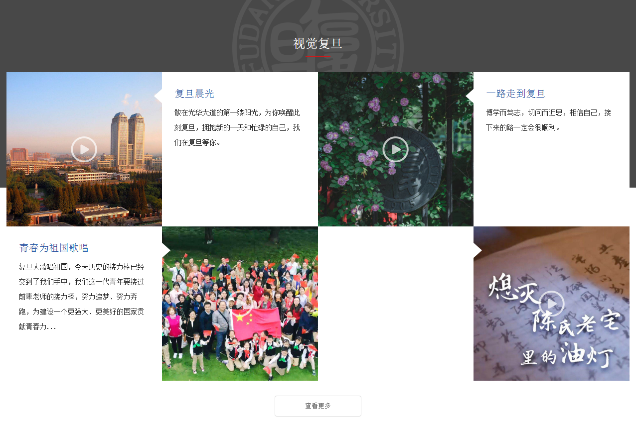 新闻聚焦、复旦百科(建筑、人物、书屋)、视觉复旦、专题网站……多角度、多信息载体地向公众展示复旦风采。