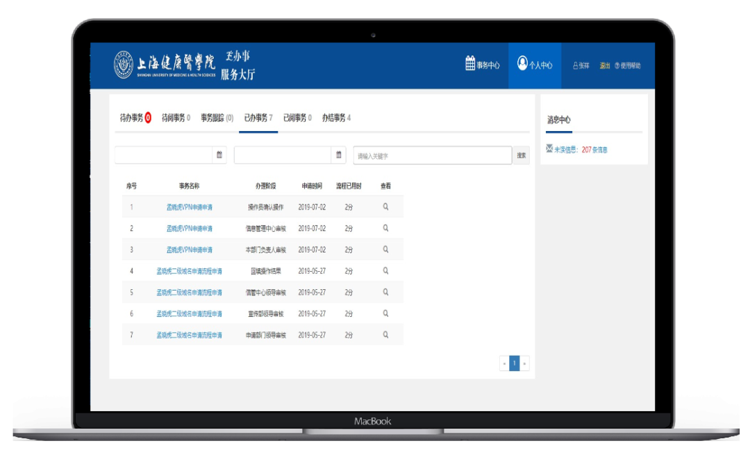 2019年二期项目建设则定位于原有系统集成、新增流程完善,深化既有服务。基于一期搭建的流程引擎平台和快速开发平台构建应用流程,重点优化服务,强化管理、统计、分析的功能,进一步规范流程、提升管理、提高办事效率、实现师生少跑腿、消除空间障碍,提升师生办事体验。