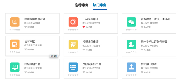 需求收敛:优先解决师生共性需求,首批建设的50个轻应用,以资讯类、查询类为主,办事类的优选常规OA流程。让师生快速体会信息化带来的价值,直观展示效果,为服务深化打下基础。
