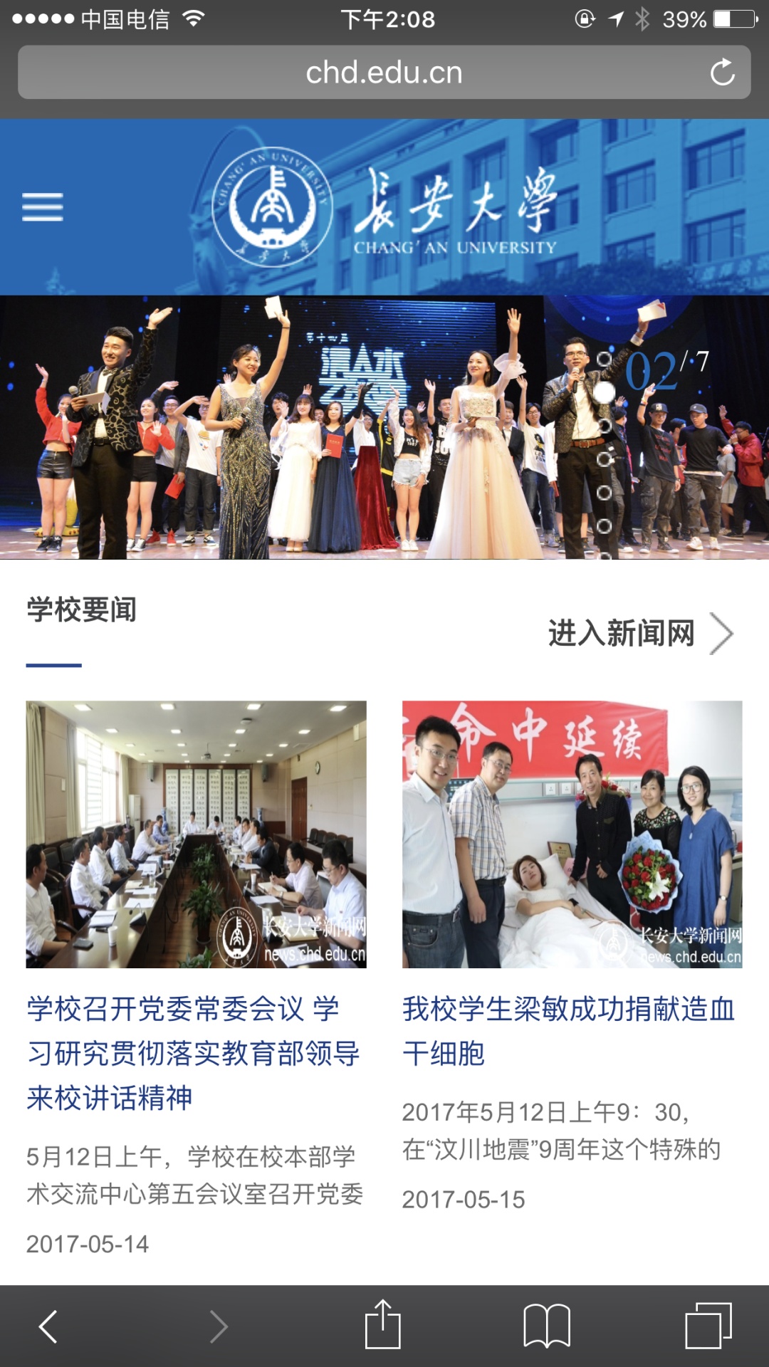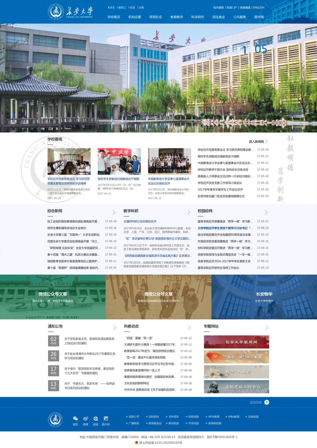 长安大学新主页充分考虑浏览者阅读习惯和需求,创新地融合新媒体,栏目清晰,内容丰富,设计新颖,凸显长安大学特色。