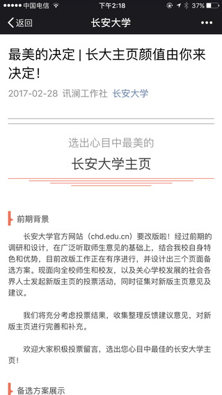 在设计阶段,长安大学初选了三个设计方案,采用了广泛的投票调查确定主页风格,票选了目前的设计方案,并根据反馈意见进行了优化。