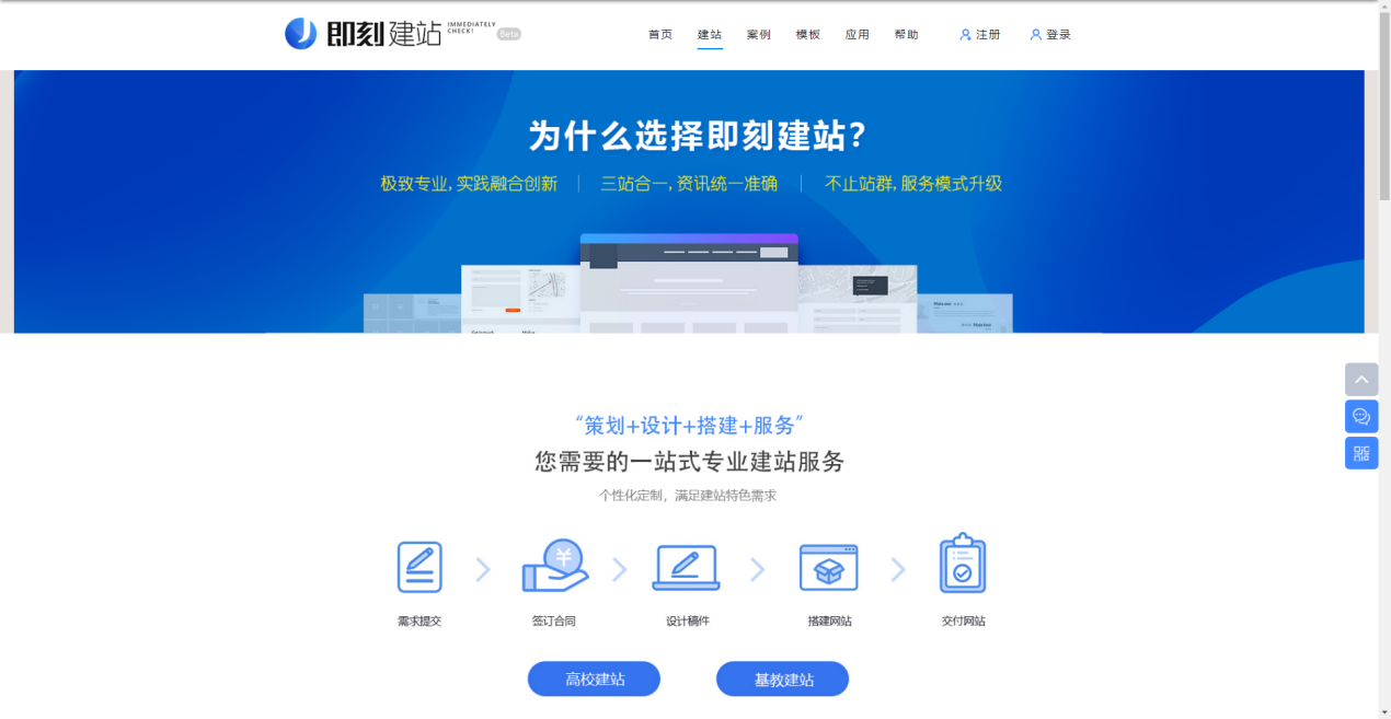 100+部门网站一改传统线下建站流程,选择即刻建站服务,专属模板库,在线需求收集、查看进度,批量建站方便快捷,项目流程可见可控。