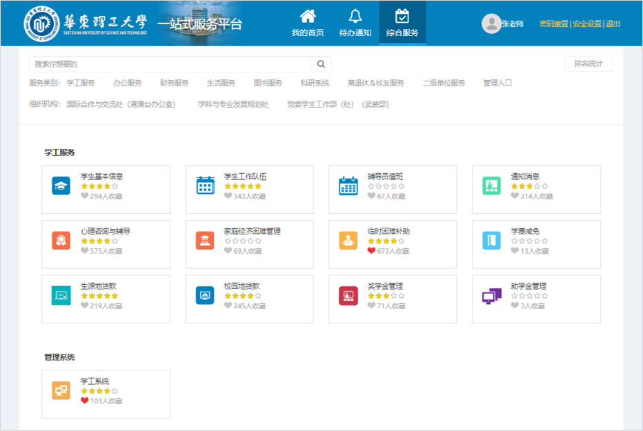 华东理工大学近两年随着办事大厅的建设,校园业务通过碎片化的方式为师生提供着各项服务。
