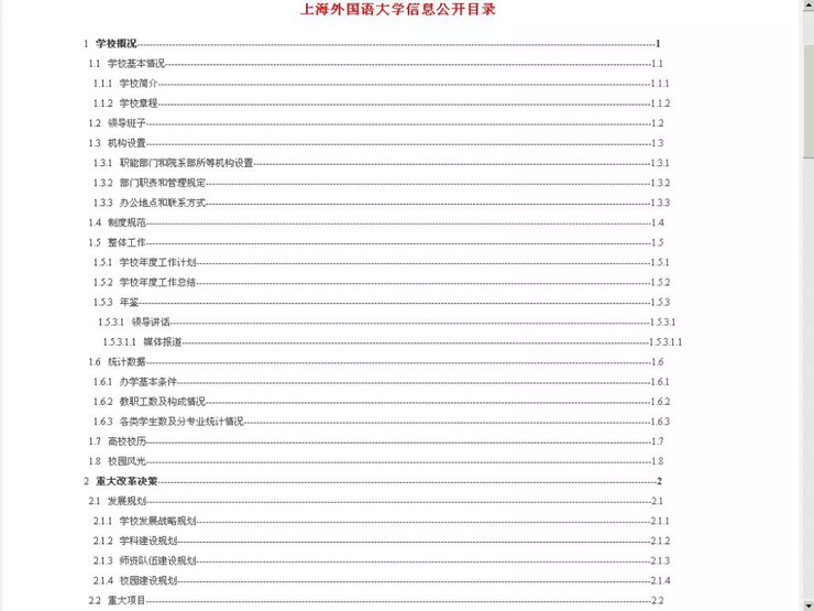 经典案例:上海外国语大学信息公开目录