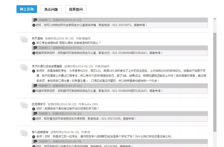 增强学校与公众间的互动交流,提供互动交流、在线咨询、监督投诉、网上信访等。