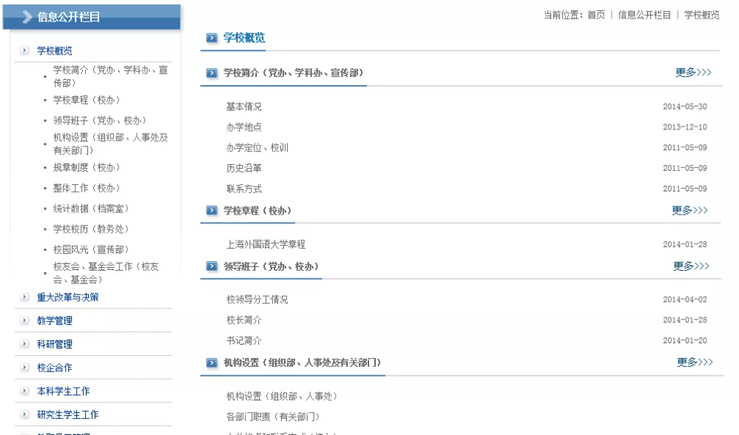 经典案例:上海外国语大学信息公开网http://info.shisu.edu.cn/